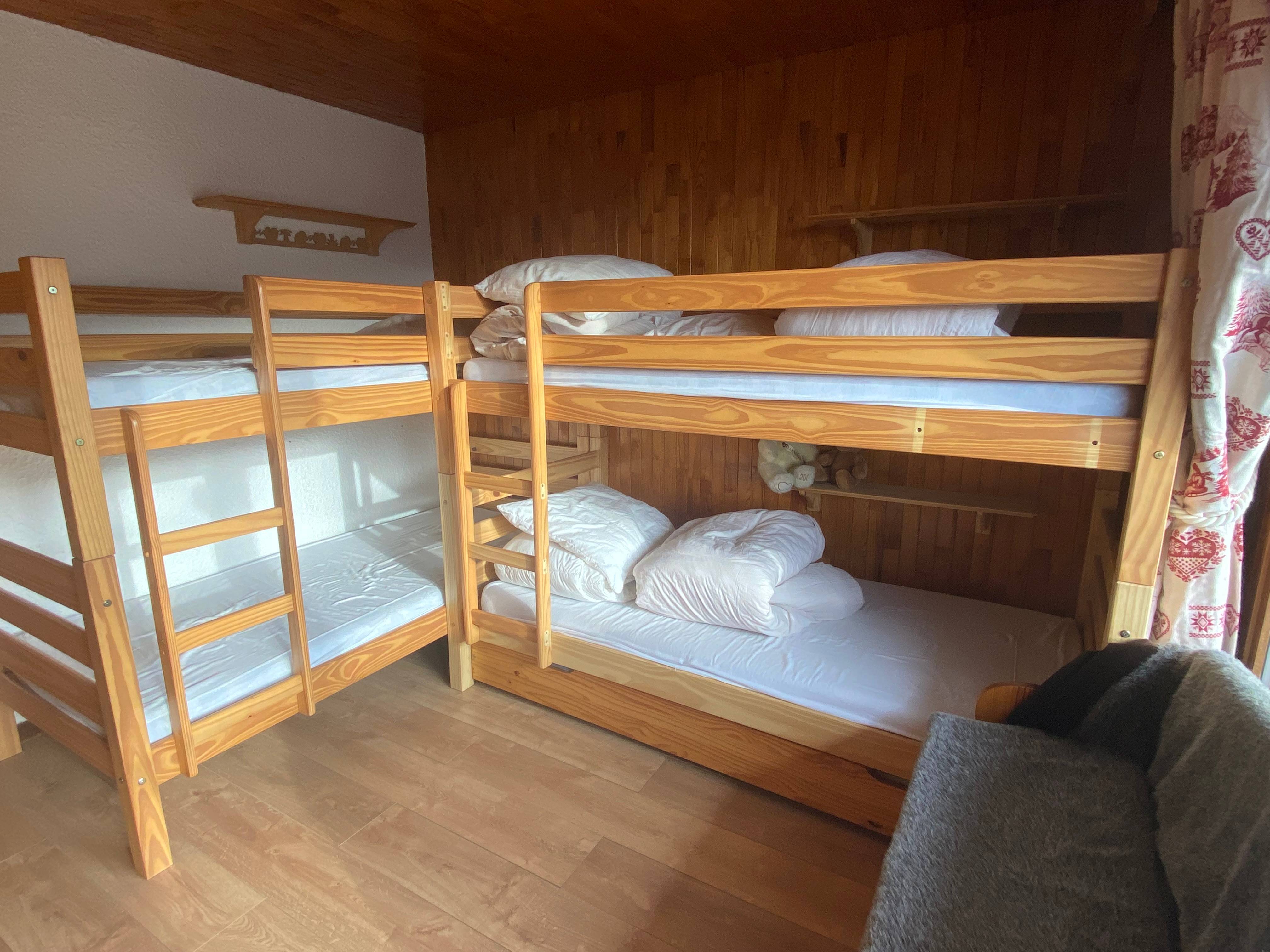 L’appartement se compose d’un séjour, d’une kitchenette totalement équipée (four, micro-ondes, plaques, lave vaisselle …), d’une chambre avec un lit de 140cm, d’une 2ème chambre avec 2x2 lits superposés, d’une petite salle de bains et des WC séparés.