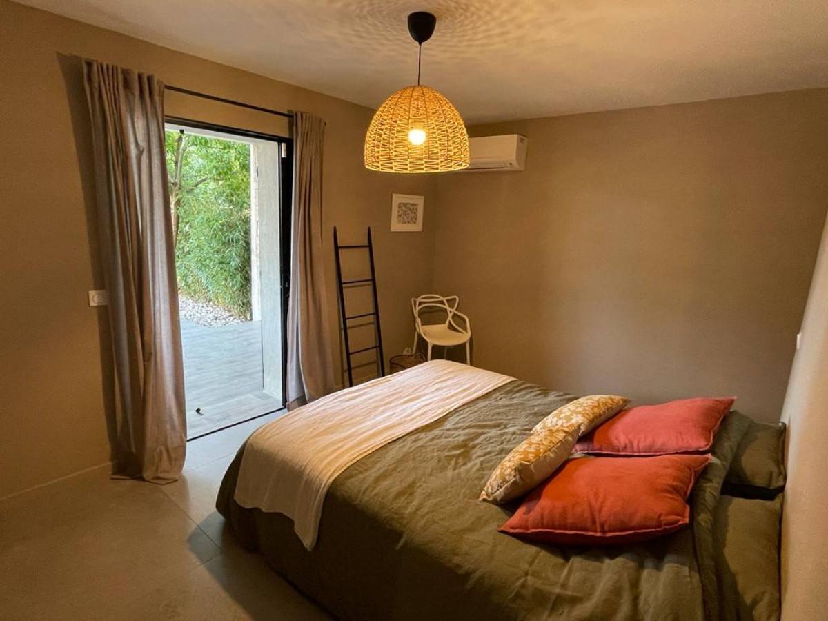 Exposé plein Sud, notre rez de villa se compose d’une pièce de vie avec une cuisine équipée et d’un salon donnant sur une terrasse couverte et d’un jardin avec piscine et trois chambres climatisées avec placard.