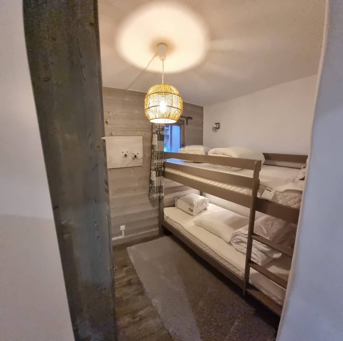Capacité de 5 personnes avec 1 chambre lit double 160x200, 1 chambre avec lits superposés et un canapé convertible.